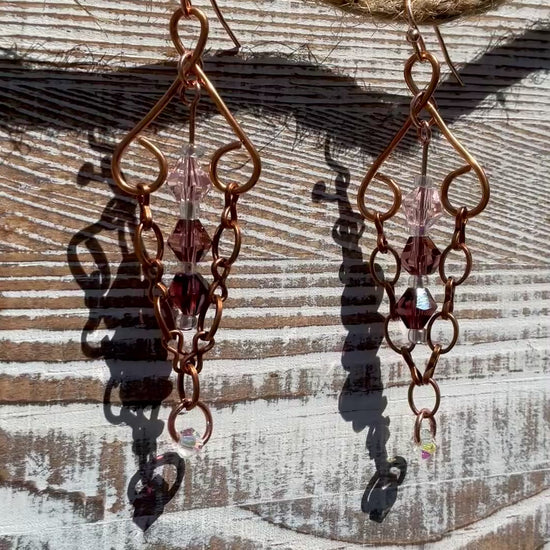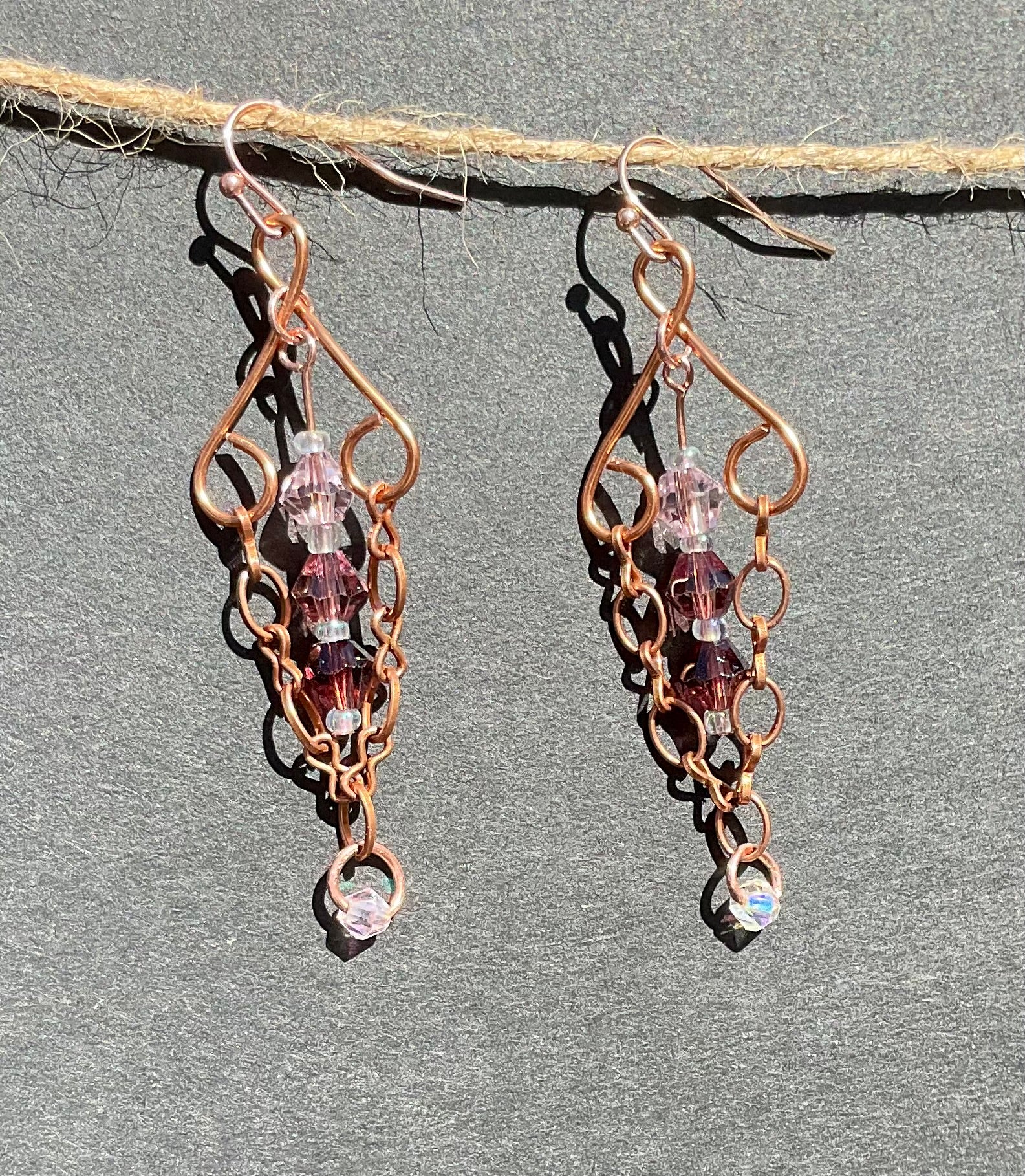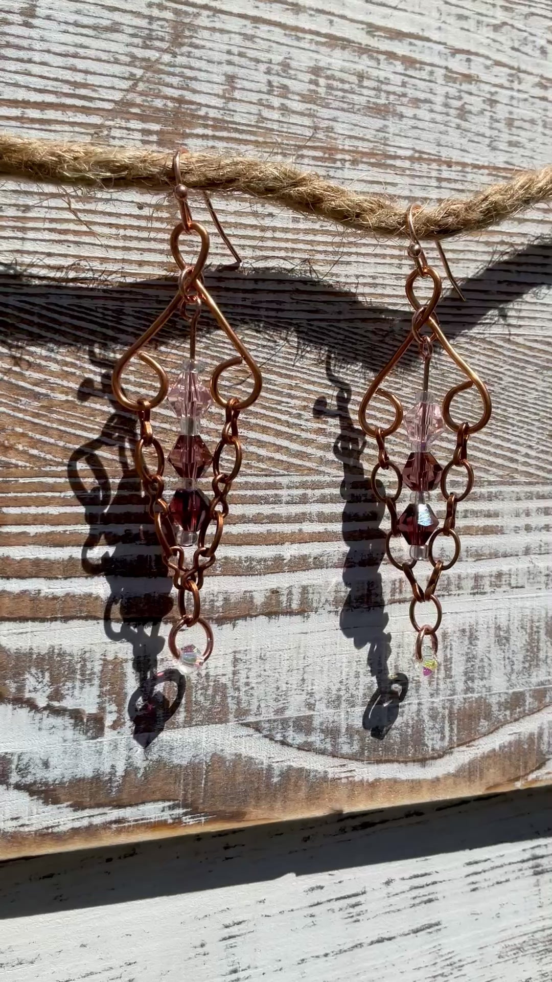 These handcrafted copper wire earrings are a tribute to the quiet power of growth. Each spiral and curve is shaped with intention, echoing the sacred geometry of roots and renewal. Faceted bicone beads shimmer like dew on morning soil—light-catching reminders of clarity and grace. The copper, warm and grounding, carries ancient energy: a conductor of courage, creativity, and connection. Lightweight yet bold, these earrings are talismans for the woman who bends but never breaks—who rises, again and again, with beauty in her bones and fire in her spirit.